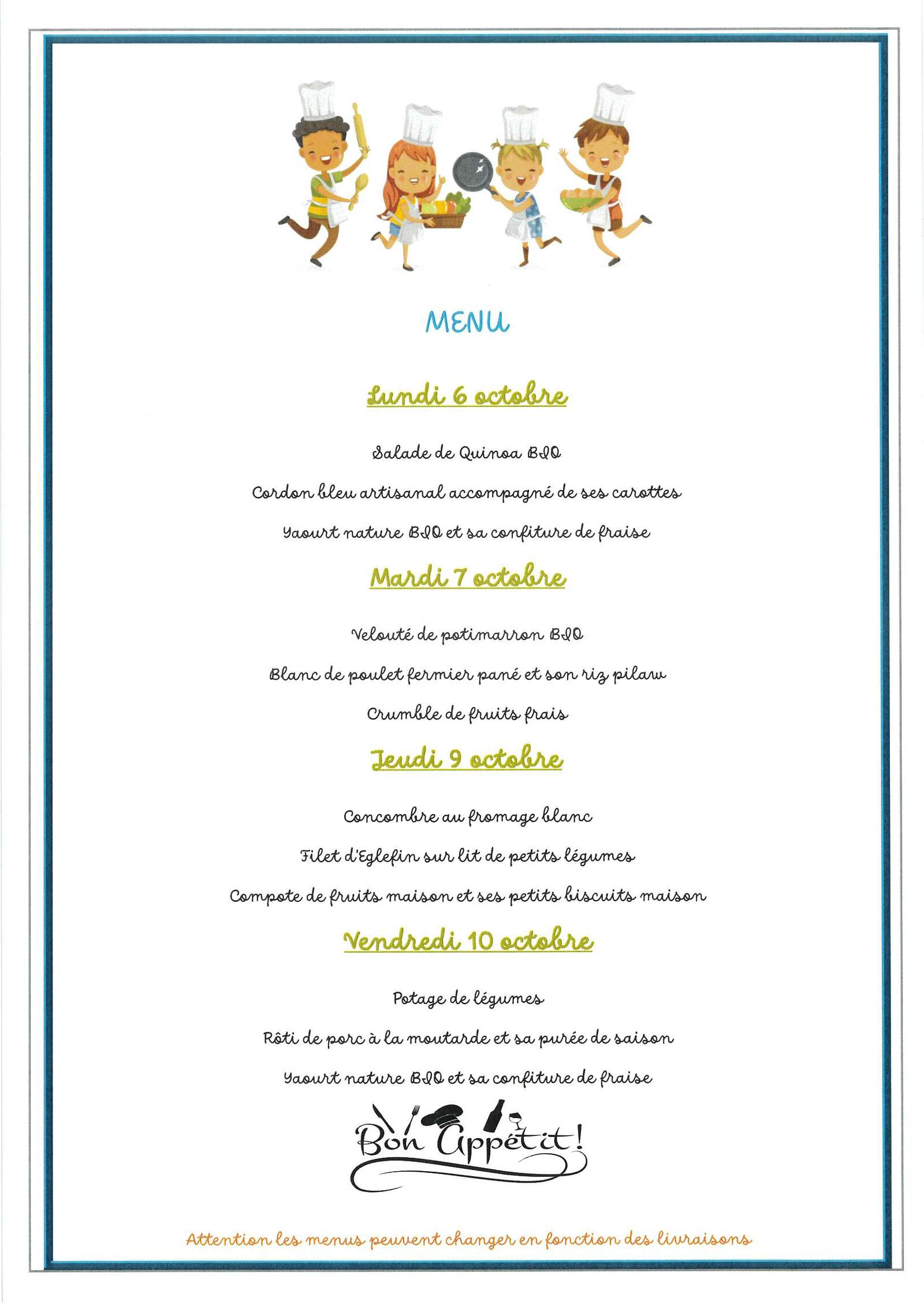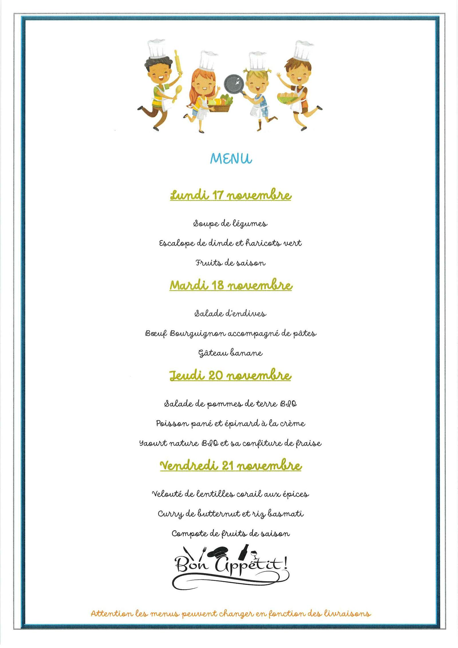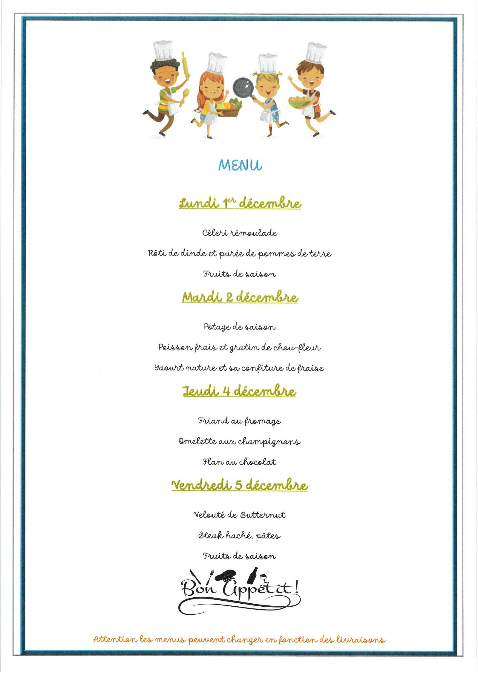 Menus cantine