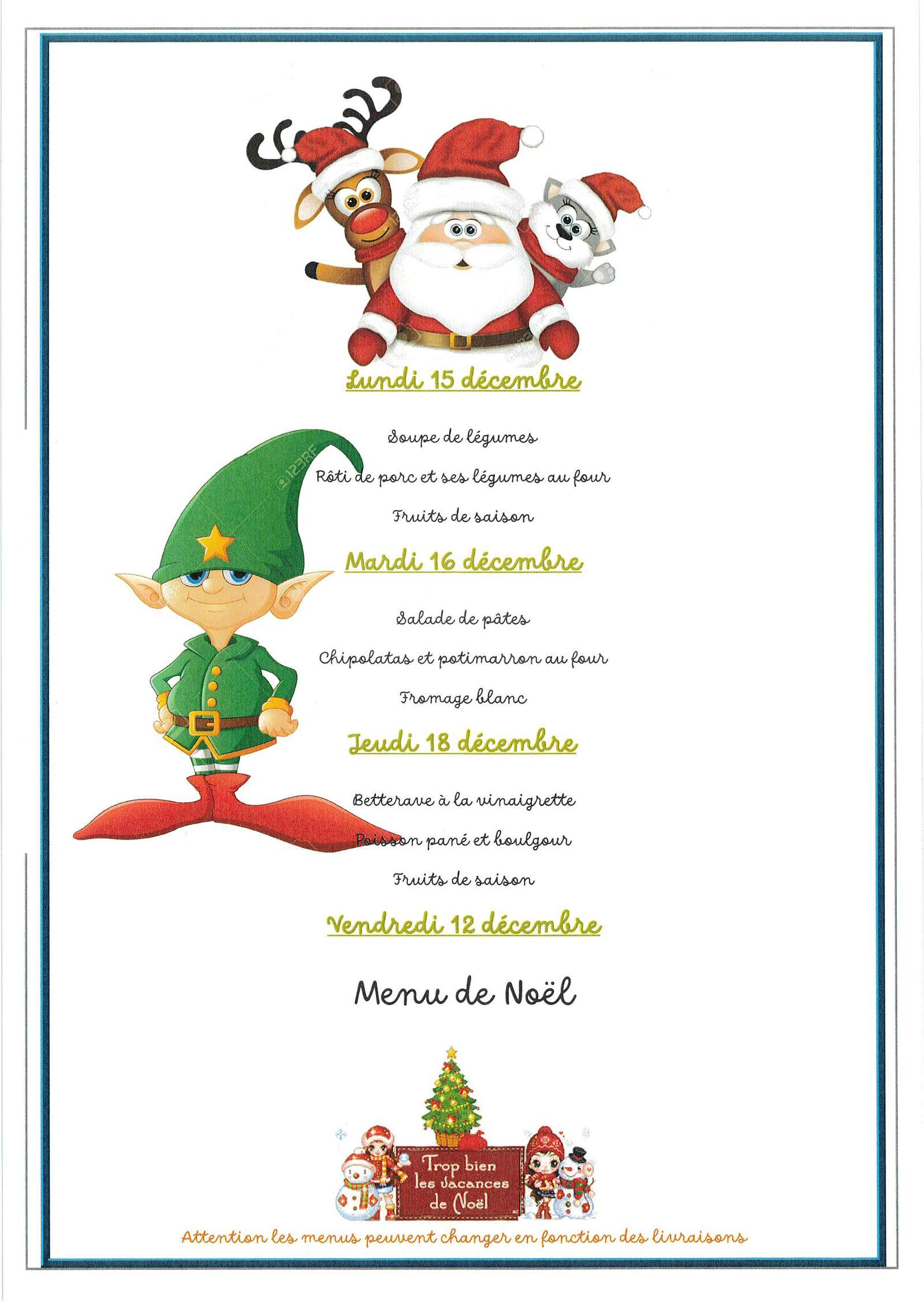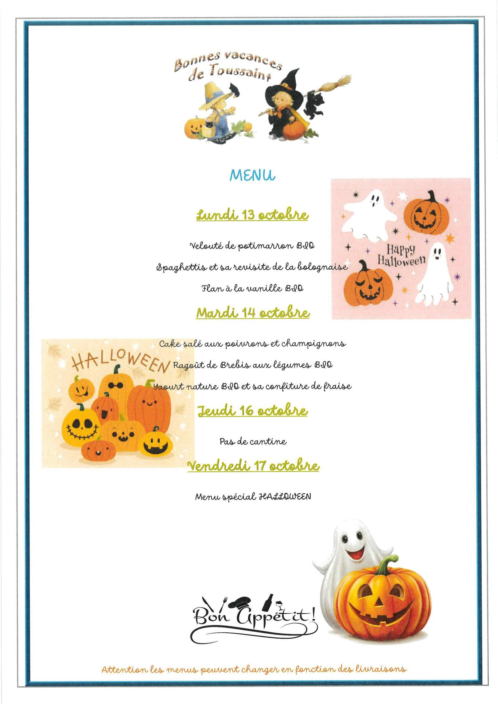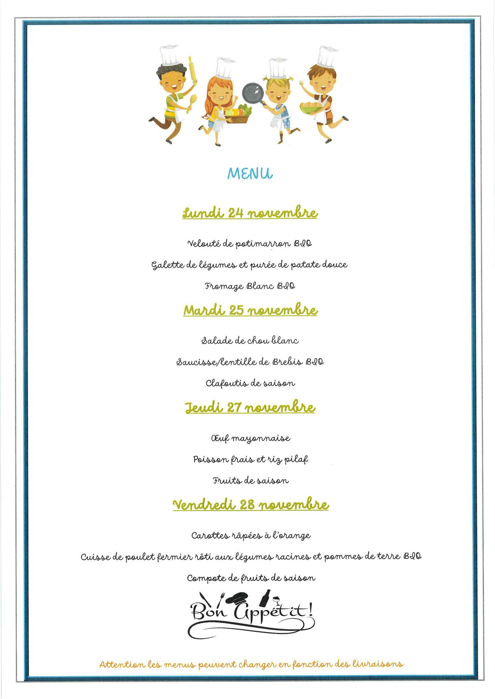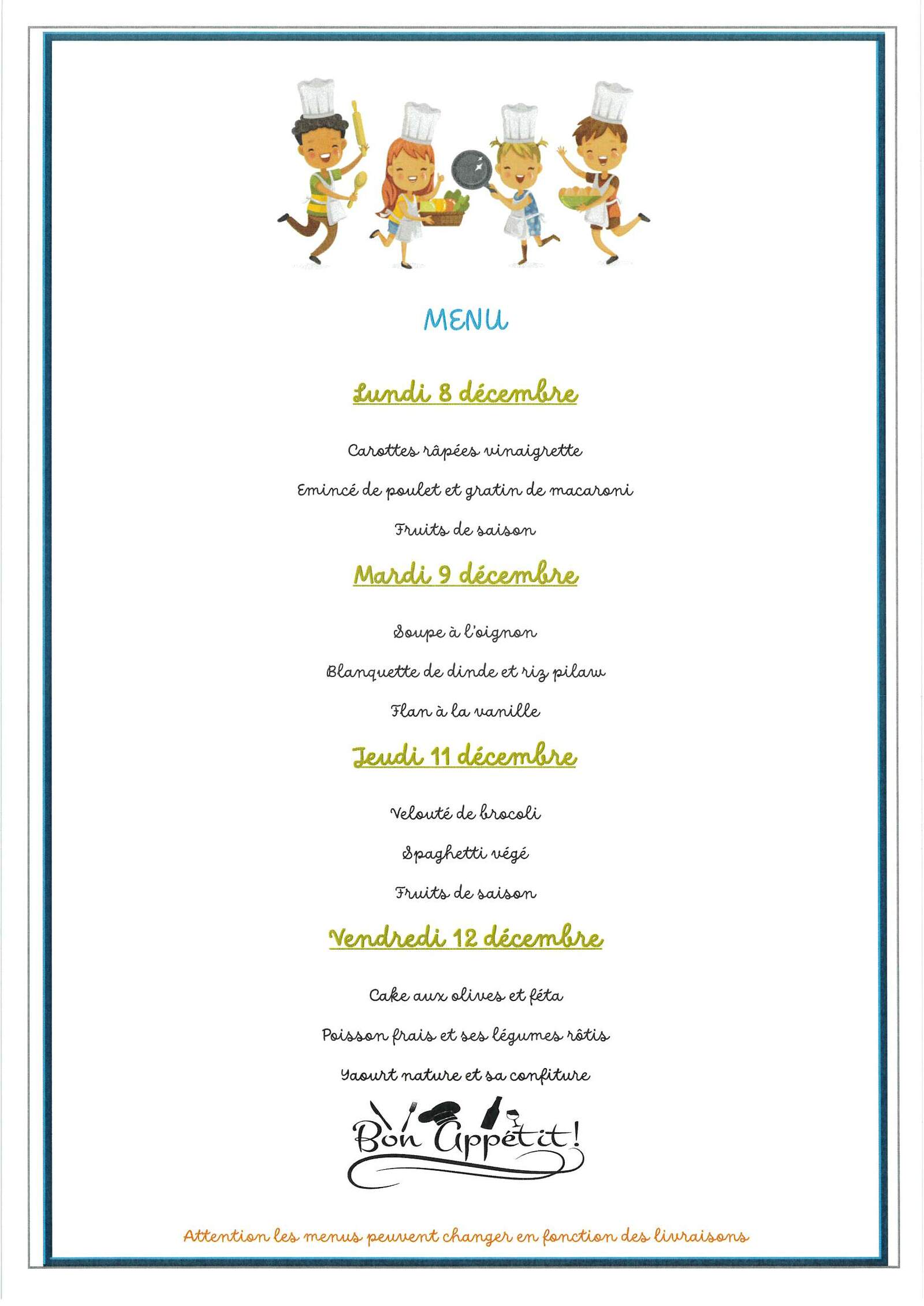 Menus cantine